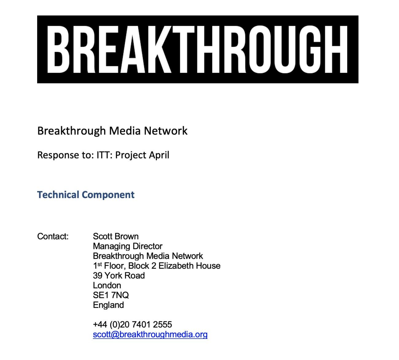 Breakthrough Media Network (company number 06651251) is a London strategic communications company that was founded in 2008. The firm specialises in producing digital campaign materials for “governments, non-profits, inter-governmental organisations and progressive companies”, with a goal to “strengthen society and inspire positive social change”. Breakthrough Media has produced a series of government campaign resources, including for the Department for Education, the Department for Health, the Foreign & Commonwealth Office, and the Home Office.