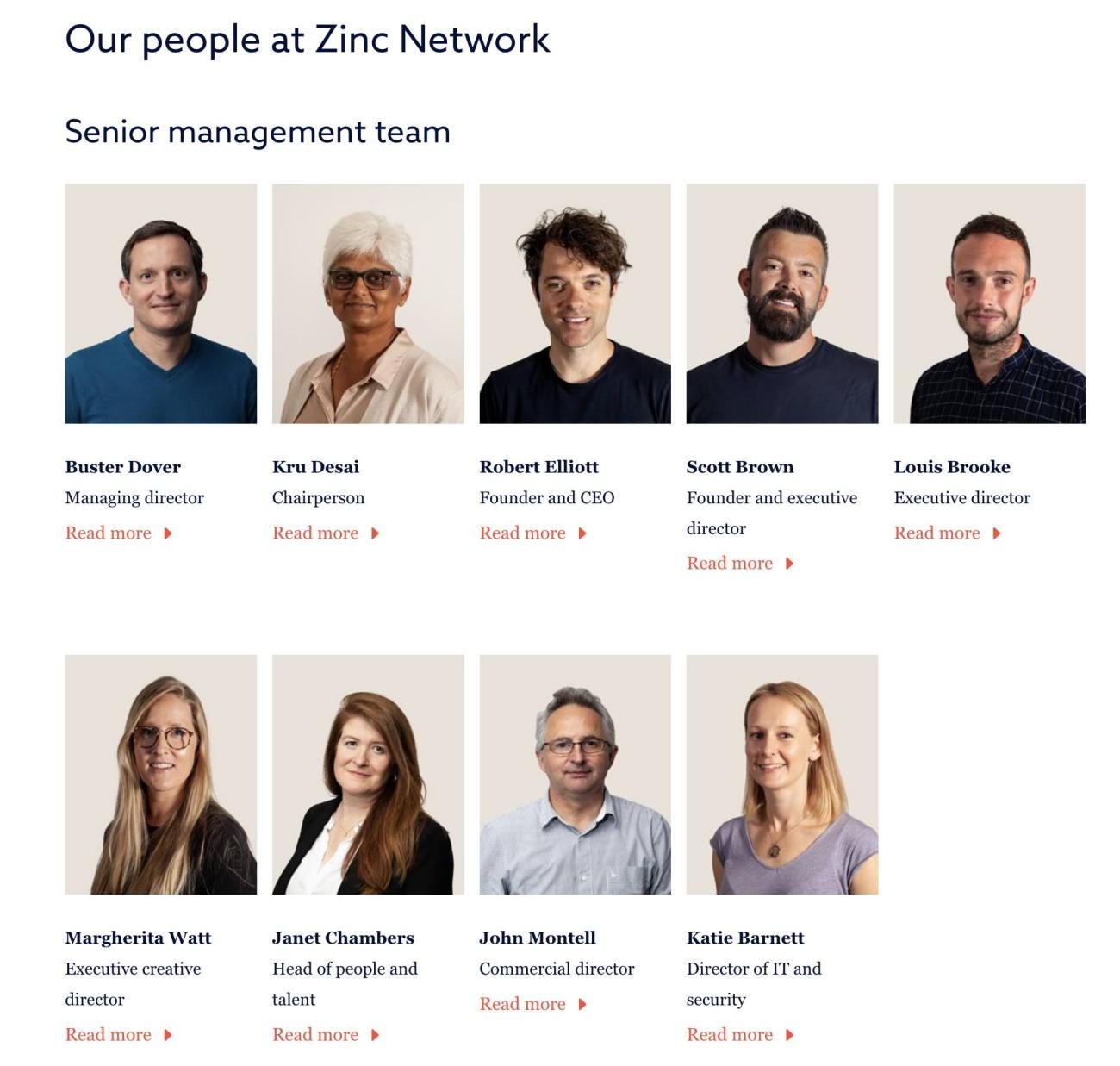 Ethnic diversity in the senior management team at Zinc circa 2020